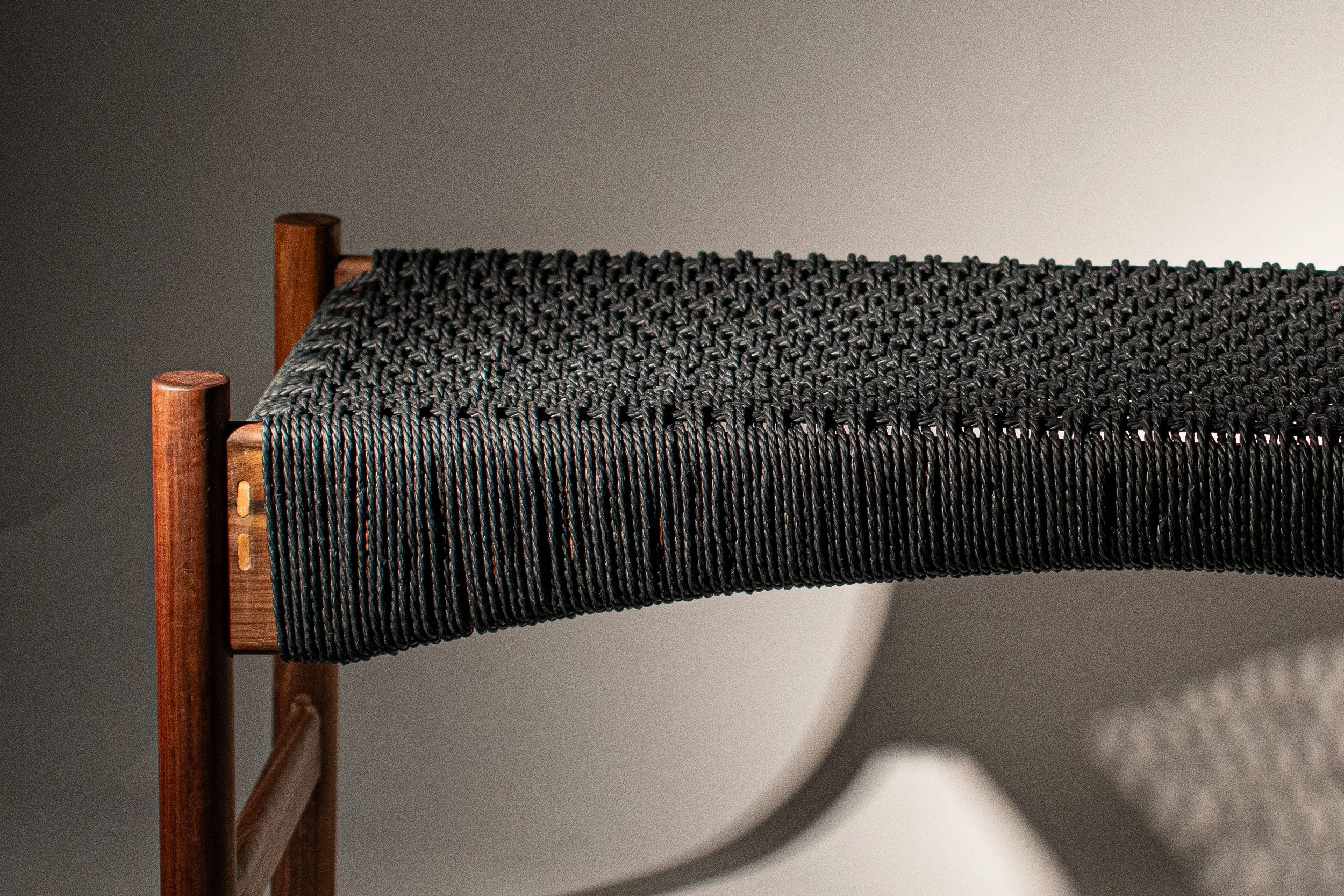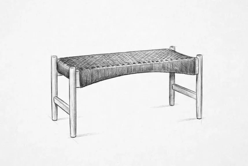 Unlike ordinary furniture, the Danish Bench uses wood for the frame and cord for the seat. Building the wooden frame takes about 15 hours, and hand-weaving the cord seat takes another 10 hours, highlighting its handcrafted nature.